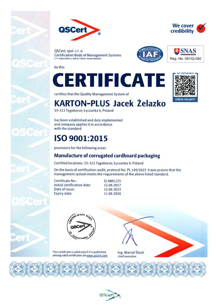 Nasze działania w celu realizacji strategii firmy oparte są na systemie zarządzania jakością wg normy ISO 9001:2015 skupiającym się na: